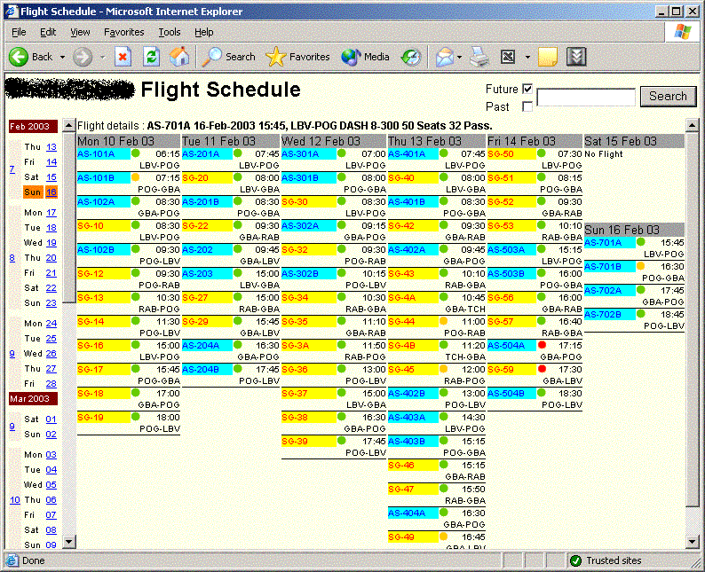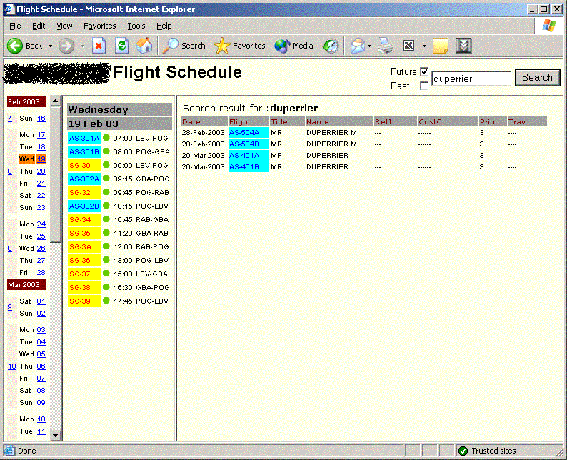I have designed in 1999 a Flight schedule reporting web site. The existing Oracle database has not been modified, this tool is still used daily by all company staff.